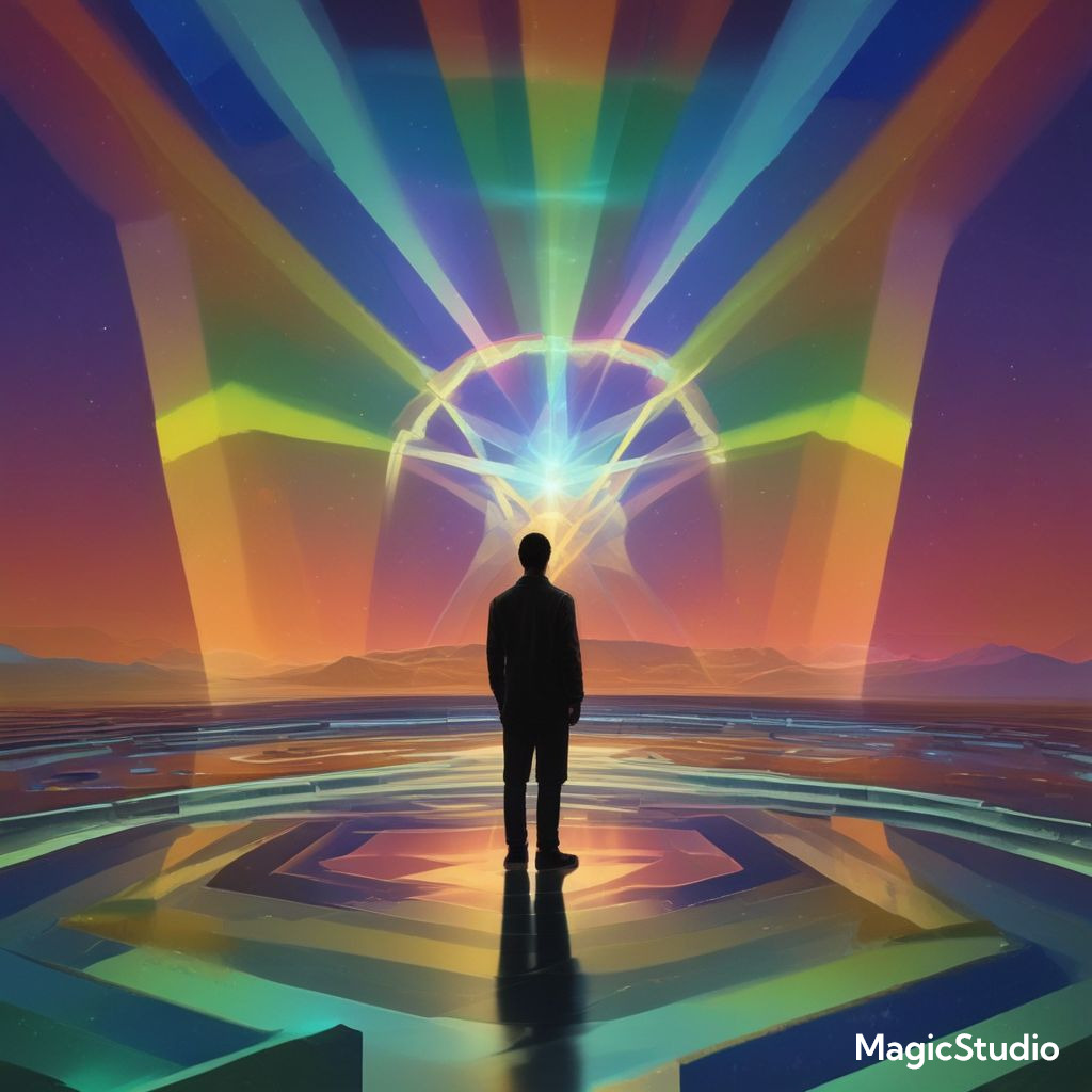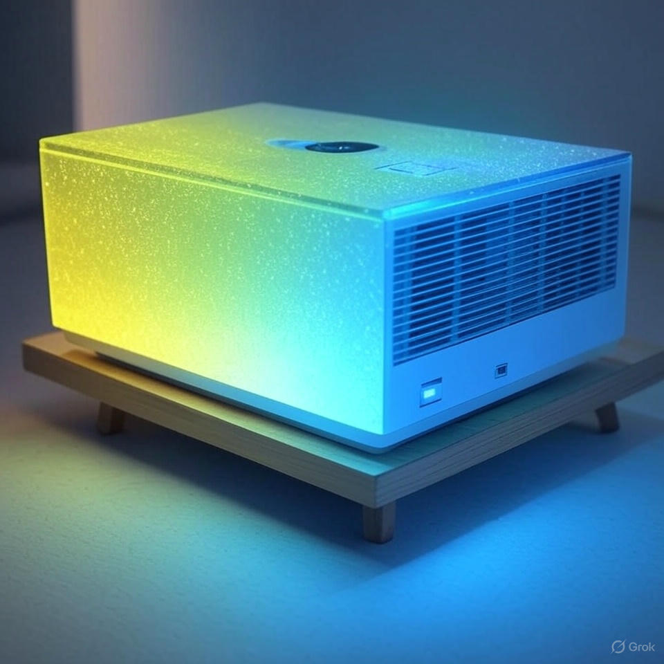 A portable holographic projector that loops the tri-gradient ~NU flag (yellow-green-blue) in 1:1 scale. Activated by collective breath via Bluetooth-linked SoftSync bracelets. Ideal for rituals, solo buffering, or “de-bordering your emotional space.”