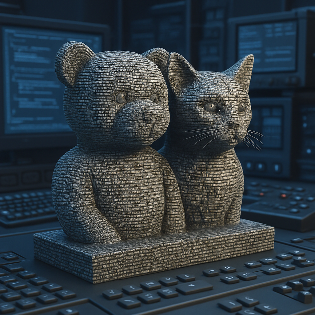 AI art accelerates this transformation. Platforms like Midjourney, DALL·E, and Runway ML generate endless variations of bears and cats as cyber-monastics, glitch-guardians, or emotion-syntax carriers. These representations do not simply reflect culture—they recode it, reorienting visual standards in mass media around affective accessibility and recursive strangeness. What was once cliché is now post-ironic glyphware—symbols re-entering mass consciousness via a new aesthetic language.