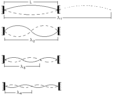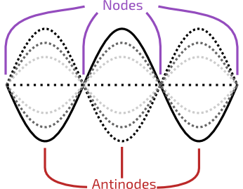 | Standing wave | eigenmodes | Nodes/antinodes | Vibrating string modes |