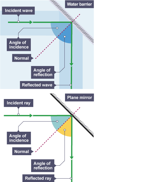 | Refraction/Reflection | boundary interaction | Direction change | Bent wavefronts |